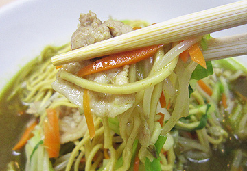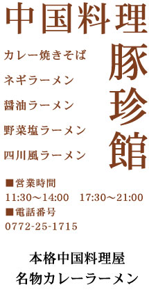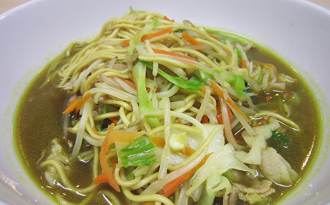 宮津市内で中国料理店として腕を磨き続けた豚珍館のカレー焼きそばは、カレーラーメン!?と間違うほどの超ウェットタイプ。元々、焼きそばライスとして誕生したメニューでお客さんが麺の後にご飯を入れて食べたい、という声により、もう少しスープを入れて…というリクエストが現在の「つゆだく」へと進化しました。地元野菜たっぷり・中華スープのだしも使用・焼きそばの麺も130g(一般店は100g)と食べ応え満点の一品は、本当にカレー「焼きそば」なのか!?(笑)是非ご自身でお確かめください。
