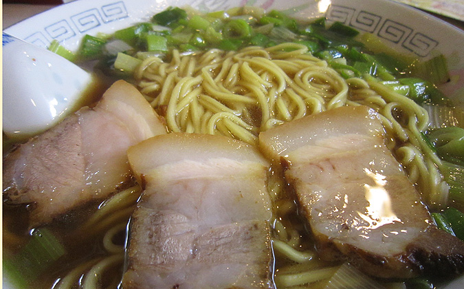 豚珍館の豊富な中華料理メニューで、ご当地グルメ「カレー焼きそば」と人気を分け合うのが、このネギラーメンです。地元野菜のネギを使ったザックリとした歯応えとチャーシュー、醤油系スープと麺の絶妙なバランスが食欲をそそります。スパイシーなカレー焼きそばとまろやかで優しいネギラーメン。両極端なメニューですが、双方に人気があるのは納得!醤油ラーメン、野菜塩ラーメンもオススメです。